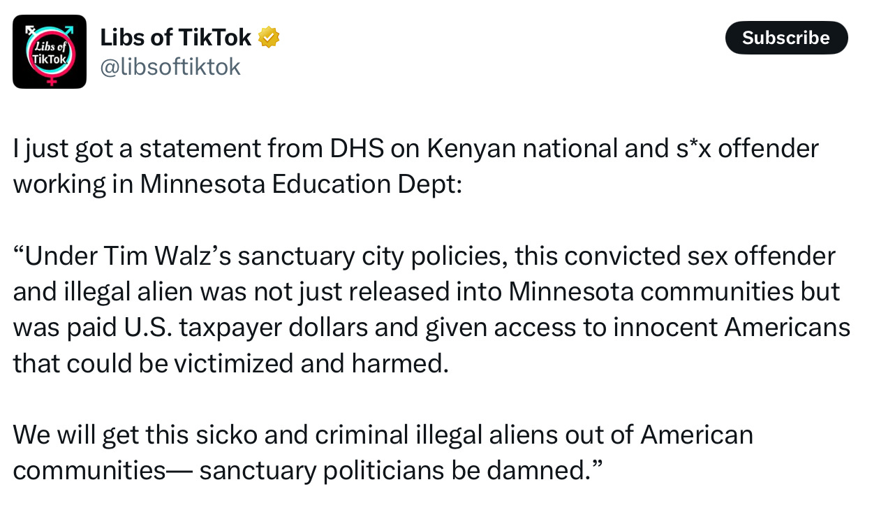 By breaking this story, Alpha News accomplished more, and helped remove a dangerous undesirable alien than Walz, the DFL, local law enforcement and the court have accomplished, since Tim Pawlenty was governor and Rich Stanek was sheriff.