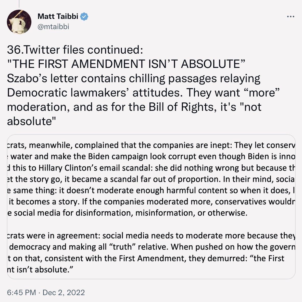 The Twitter files have shown us indisputable proof the democrats want to do away with the Bill of Rights.