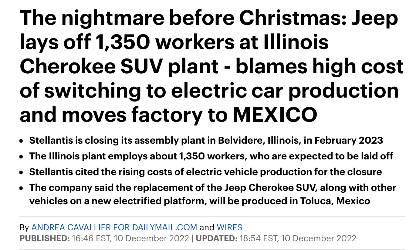 The end justifies the means. 1,350 jobs lost, manufacturing moving to Mexico. This is on Joe Biden and the democrat party and their ridiculously stupid, shoot yourself in the foot, clean green climate kook policies, all of which are unnecessary and detrimental to the people and the country as a whole. This is barely the beginning, it’s going to get worse.