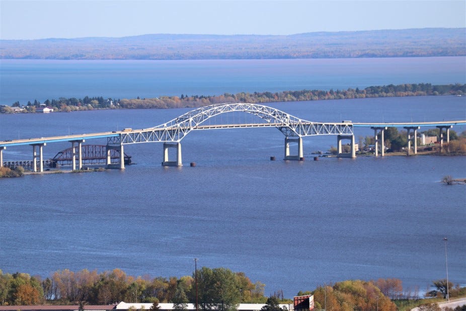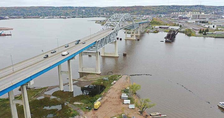 The highest bridge in Minnesota is the Blatnik Bridge, which connects Duluth, Minnesota to Superior, Wisconsinover the St. Louis Bay.