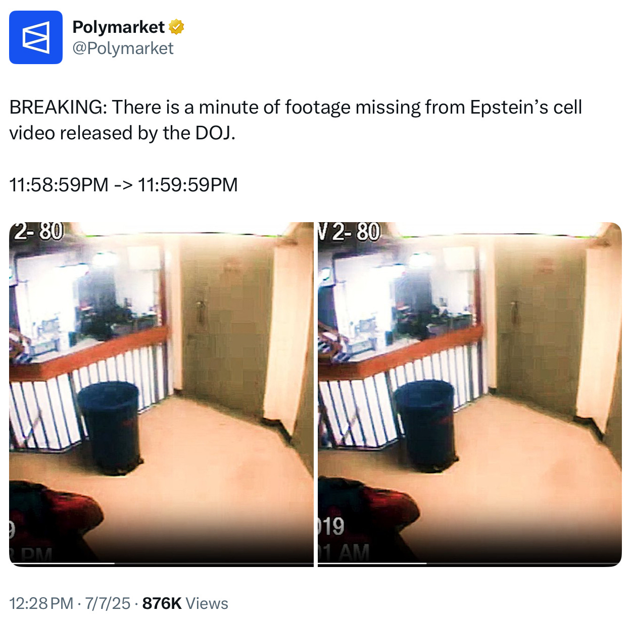 In a recent revelation that has sent shockwaves through social media and mainstream news outlets, the Department of Justice (DOJ) has confirmed that a crucial minute of footage is missing from the video surveillance of Jeffrey Epstein’s cell. This information was first reported by the Twitter account Polymarket, which shared the news along with a timestamp indicating the absence of video between 11:58:59 PM and 11:59:59 PM on the night in question. This missing footage has raised numerous questions and concerns regarding the circumstances surrounding Epstein’s death and the integrity of the investigation.