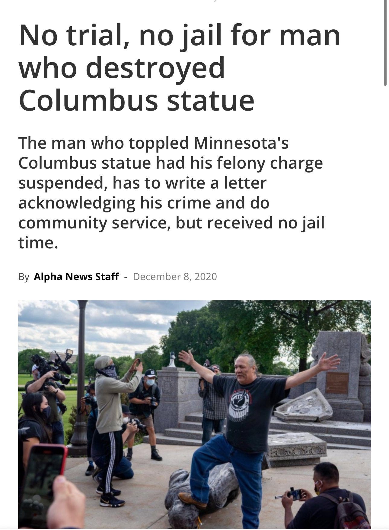 Tampon Tim once promised that there would be “consequences” for those who acted outside the law. But those consequences never came. Instead, the state quietly moved the statue into storage and pretended the issue would fade from memory. It hasn’t. The Columbus statue remains a powerful symbol of the state’s unwillingness to uphold the rule of law.
