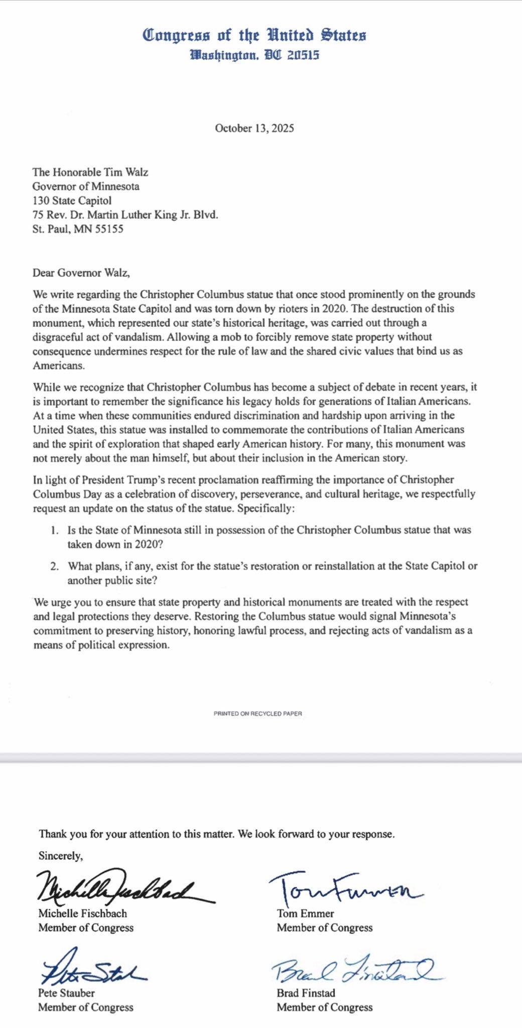 It’s been five years since a mob of renegade indians tore down Minnesota’s Christopher Columbus statue on the Capitol grounds — and Walz thinks this has just blown over and people have forgotten about it. Quite a few of us have not forgotten. The monument stood for nearly 90 years as a tribute to Italian heritage and exploration, it was toppled in broad daylight by militant AIM (American Indian Movement) activists while state troopers looked on and did nothing by order of Gov. Tampon Tim Walz.. No meaningful effort was made to stop the destruction or to restore what was lost. Now, Minnesota’s congressional Republicans are demanding what every citizen deserves: an explanation.